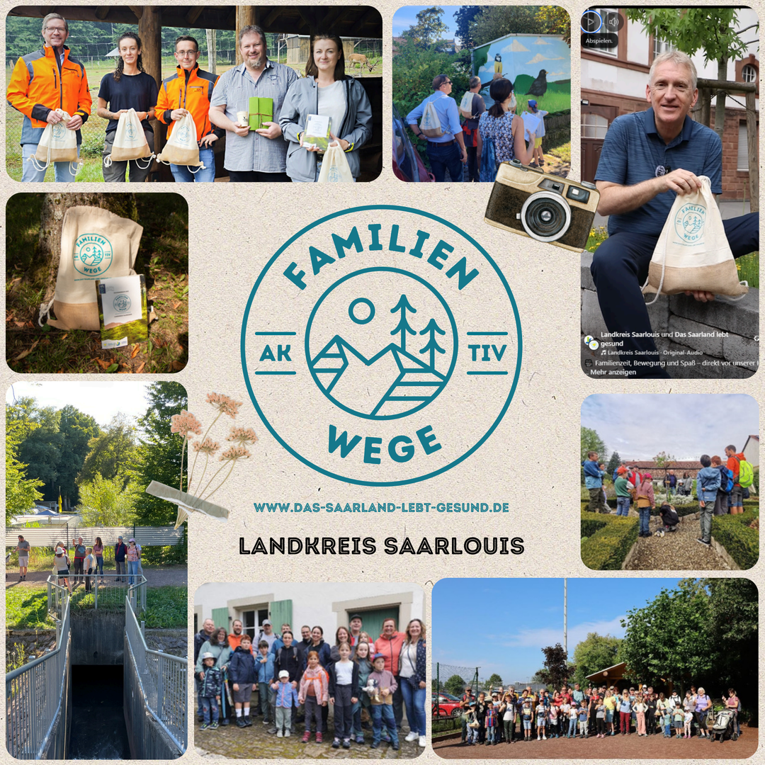 Seit Beginn der Sommerferien laden die neuen DSLG-Familien-Aktiv-Wege im Landkreis Saarlouis zu spannenden Entdeckungstouren für die ganze Familie ein. Der Landkreis Saarlouis und verschiedene Kommunen im Landkreis Saarlouis, welche alle Teil des saarlandweiten Netzwerks »Das Saarland lebt gesund!« (DSLG) sind, bieten in Zusammenarbeit abwechslungsreiche Routen, die Bewegung, Natur und gemeinsames Erleben miteinander verbinden.