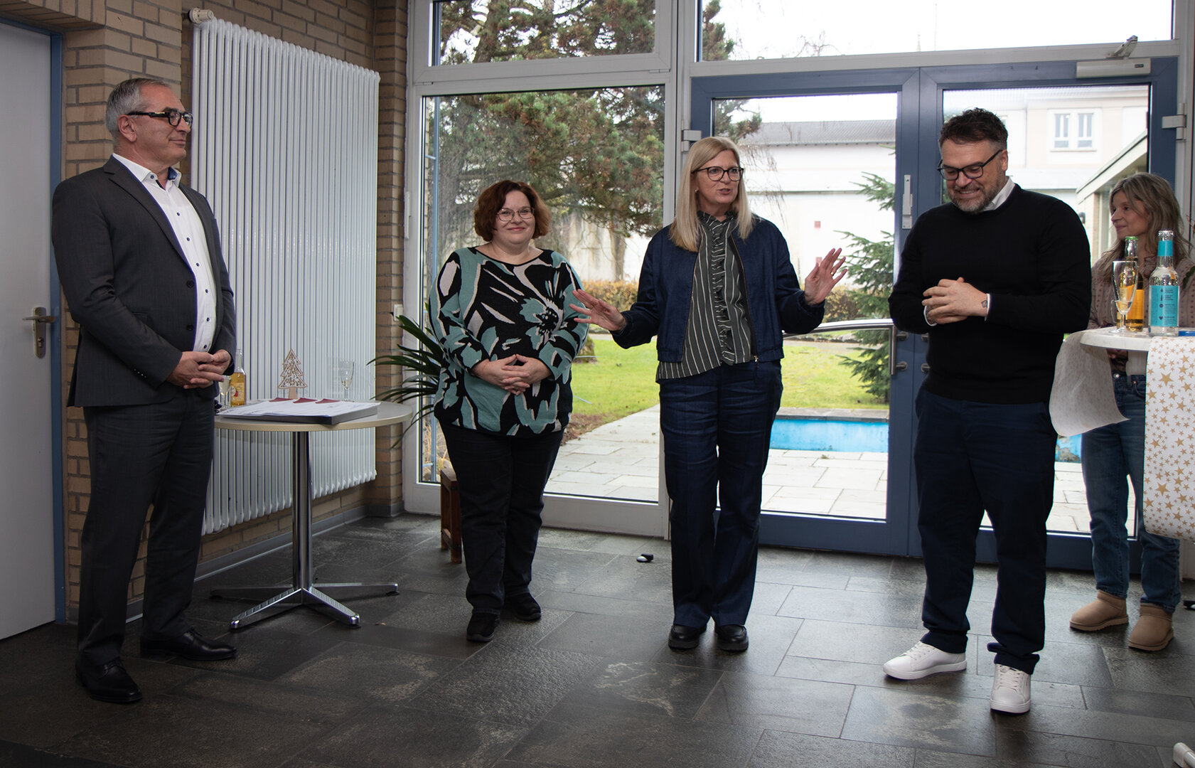 Im Rahmen einer kleinen Feierstunde im Gesundheitsamt erhielten nämlich einerseits die Kreis-Dezernentin für Arbeit und Gesundheit, Cornelia Bauer, sowie die ärztliche Leiterin und der Verwaltungsleiter des Gesundheitsamtes, Karen Benesch und Henning Schmitt, eine Auszeichnung der Axians Infoma für das Gesundheitsamt als Finalist des Innovationspreises 2025.