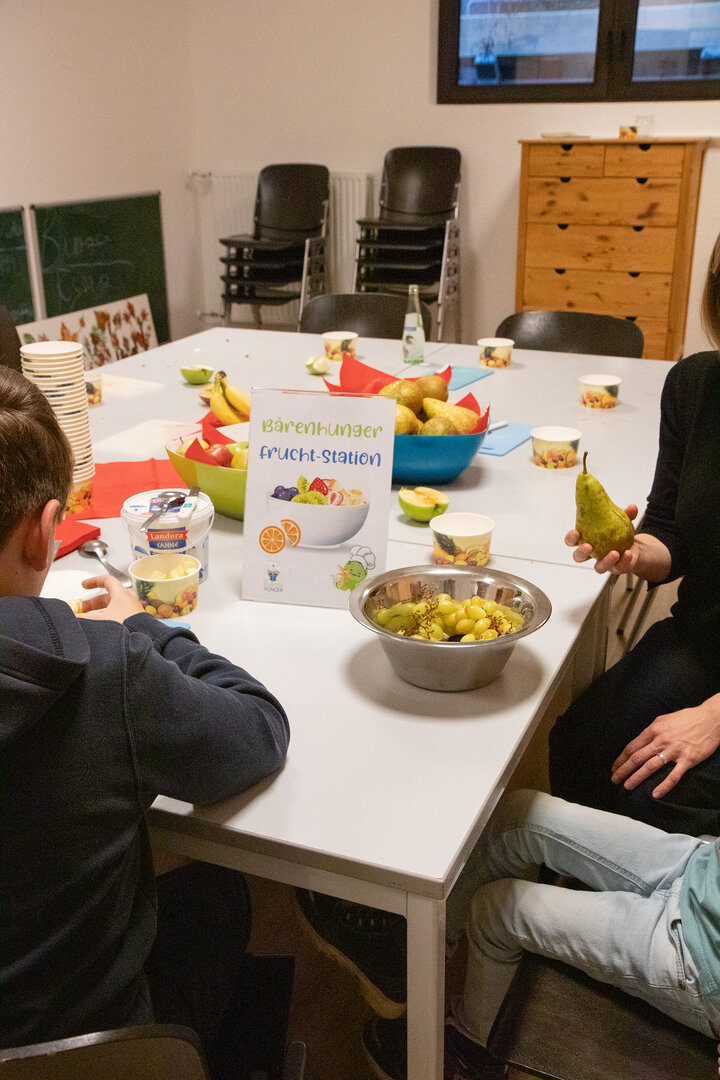 Während sich die Gäste im Foyer auf winterliche Leckereien und gute Gespräche freuen konnten, ging es in den Nebenräumen praktisch zu: So etwa bei der Bärenhunger-Fruchtstation, an der gemeinsam leckere Obstsalate gezaubert wurden. Aber auch das Familienyoga sowie der Workshop „Familienkraft – stark im Alltag“, bei welchem Eltern und Kinder spielerisch entdecken konnten, wie sie mit kleinen Impulsen gelassener, mutiger und zuversichtlicher durchs Leben gehen können, waren stark nachgefragt.