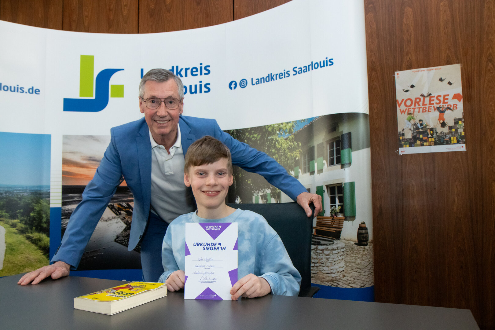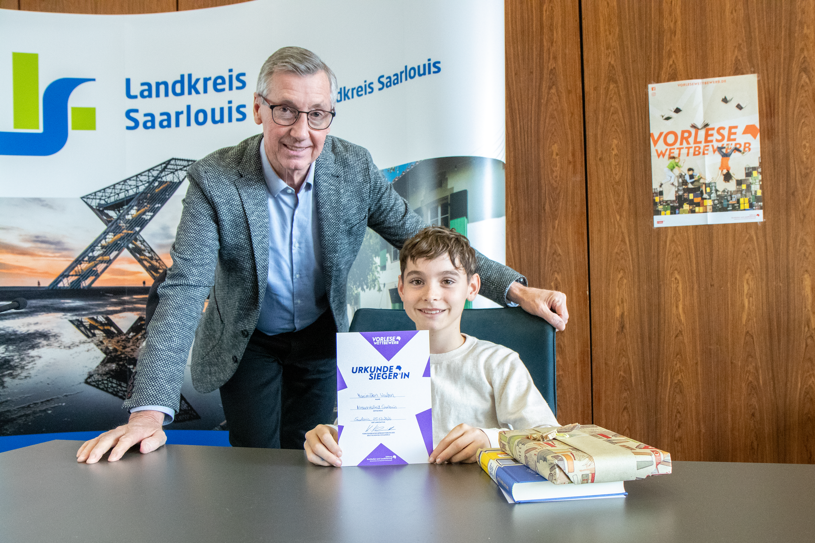 Bela Schwäbe von der Schule am Warndtwald, Gemeinschaftsschule in Überherrn, überzeugte mit einem Auszug aus „Finn reloaded“ und meisterte auch den unbekannten Text „Mortimers Geheimnis – Ein Kater, zwei Detektive und die Magie des Lesens“ von Rebecca Stead und Wendy Mass. Maximilian Warken vom Johannes-Kepler-Gymnasium in Lebach las aus „Beschützer der Diebe“ von Andreas Steinhöfel und bewältigte den unbekannten Text „Die magische Bibliothek der Buks 1: Das Verrückte Orakel“ von Nina George und Jens J. Kramer souverän. Die beiden Tagessieger qualifizierten sich damit für den Landesentscheid, der am 5. Mai 2026 in Saarbrücken stattfindet.