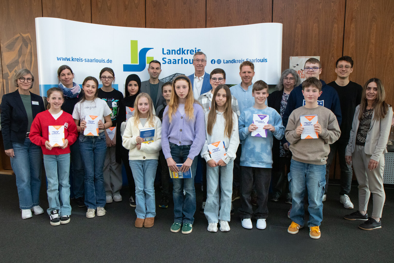 Der Kreisentscheid des Vorlesewettbewerbs 2026 des Börsenvereins des Deutschen Buchhandels fand kürzlich im Großen Sitzungssaal des Landratsamtes Saarlouis statt. Insgesamt 21 Schulsiegerinnen und Schulsieger der sechsten Klassen aus dem Landkreis Saarlouis stellten dabei ihr Können unter Beweis. Aufgrund der hohen Teilnehmerzahl wurde der Wettbewerb – wie bereits in den vergangenen Jahren – an zwei Tagen ausgetragen.