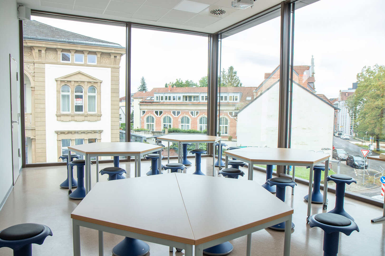 Der neue FGTS-Raum mit Sitzmöglichkeiten für die Schülerinnen und Schüler des Robert-Schuman-Gymnasiums. Foto: Landkreis Saarlouis - David Nicola Schmitt