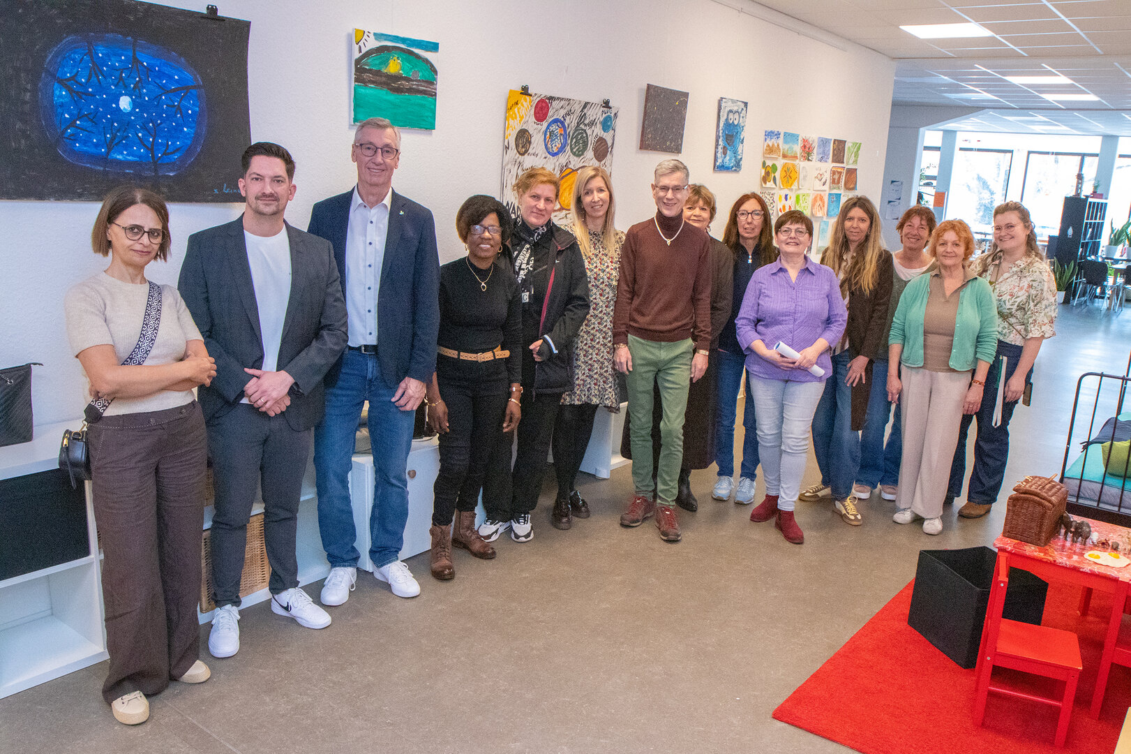 Die entstandenen Werke werden noch bis Donnerstag, 19. März 2026, im Saarlouiser Esther-Bejarano-Haus im Rahmen einer Ausstellung präsentiert, die im Kontext des Weltfrauentages steht und die Themen Sichtbarkeit, Stärkung und Teilhabe von Frauen in den Mittelpunkt rückt. Der Kreisbeigeordnete Bernd Valentin ergänzte im Rahmen der Eröffnungsfeier: „Kunst ist weit mehr als nur Ästhetik; sie ist eine Sprache, die verbindet, stärkt und bewegt. Die Ausstellung ‚Willkommen Mama meets art‘ ist Ausdruck einer lebendigen Gemeinschaft, die gemeinsam lacht, nachdenkt und handelt.“