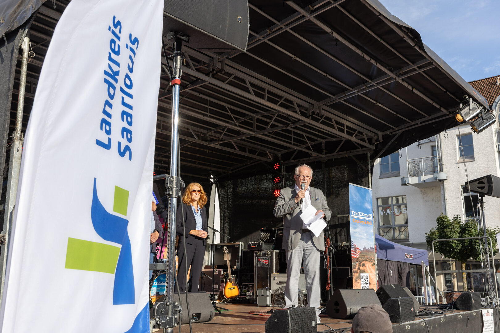 Im Anschluss an die Ehrungen folgte die Auslosung der Gewinnerinnen und Gewinner des Saar-RAD-Quiz. Neben attraktiven Sachpreisen wie Fahrradhelmen und Regenschirmen gab es auch einen Hauptgewinn, über den sich Rudolf Magar aus Schwalbach freuen durfte. Er bekam ein neues E-Bike, zur Verfügung gestellt vom Globus Baumarkt Saarlouis. Für den musikalischen Ausklang sorgte die Band TreZZmen, die mit Country- und Rockmusik für beste Stimmung auf dem Marktplatz sorgte.